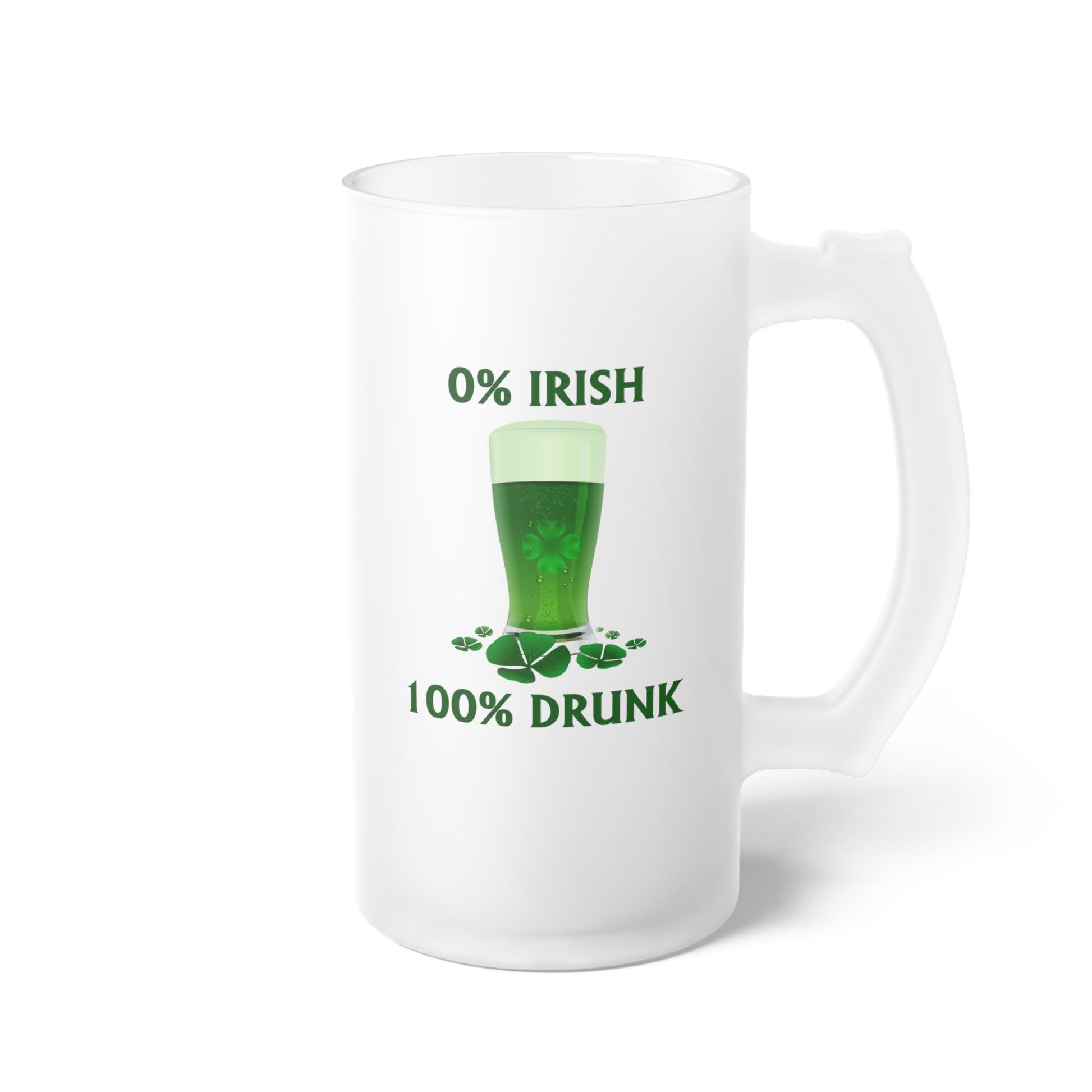 0% Irish 100% Drunk - Frosted Glass Beer Mug - Perfect for St. Patrick's Day Parties and Celebrations