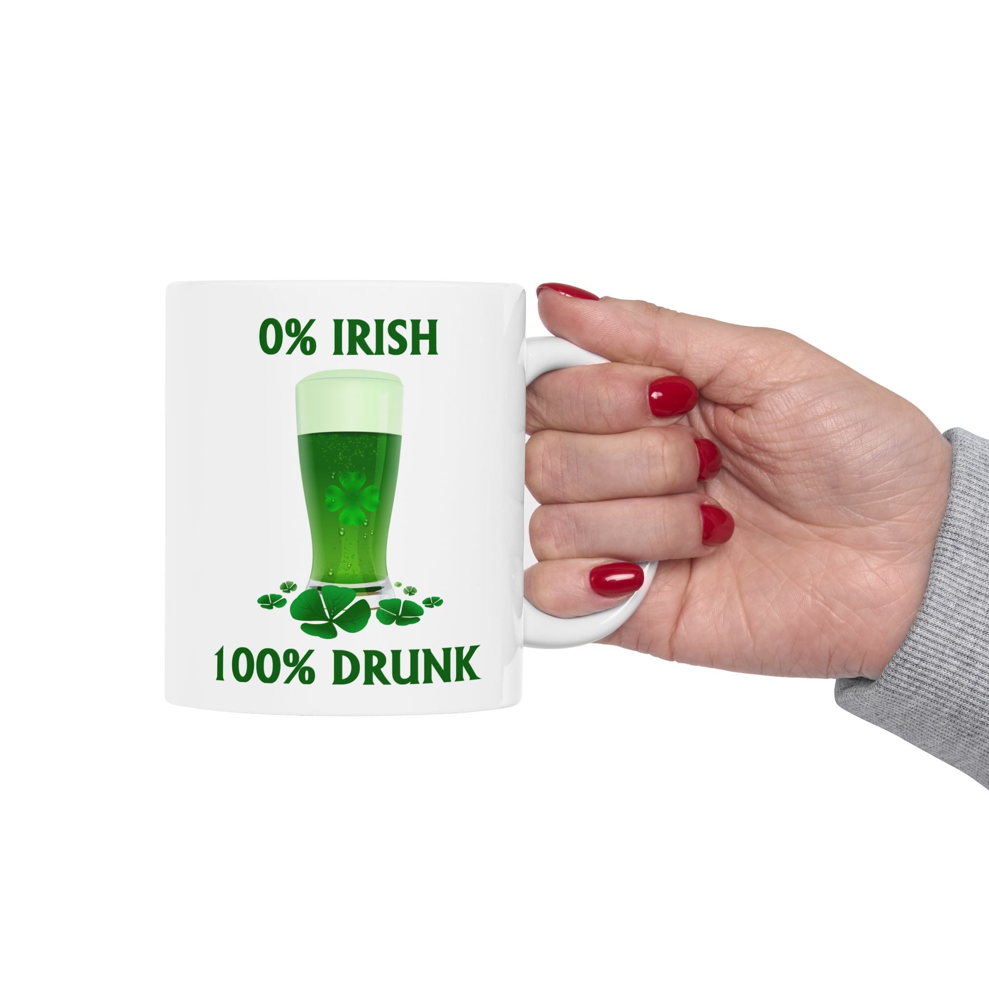 0% Irish 100% Drunk Funny St. Patrick's Day Coffee Mug (11oz/15oz)