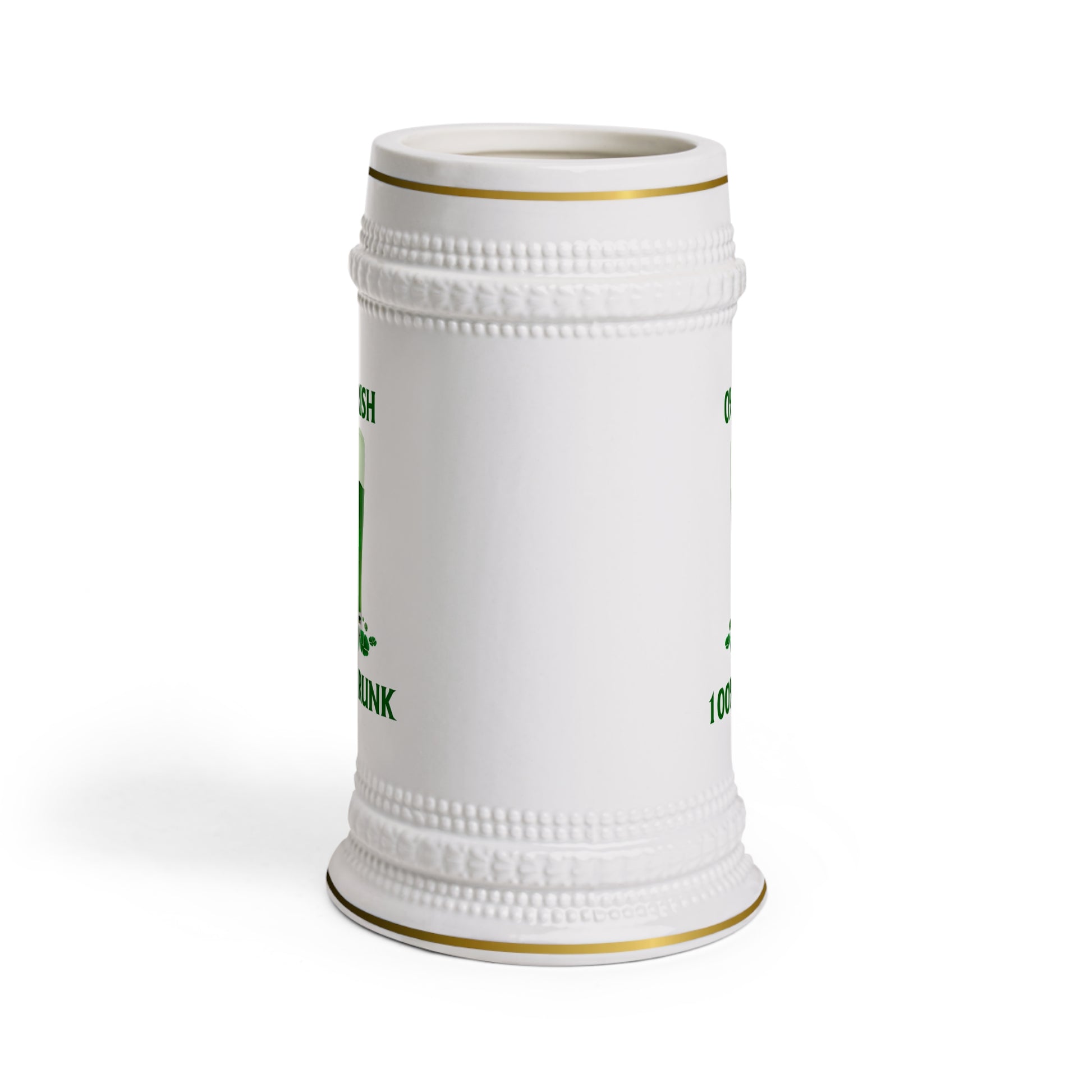 Introducing the ultimate beer stein for those who love to indulge in merrymaking and spirited revelry - our "0 Percent Irish, 100 Percent Drunk" beer stein. This light-hearted and humorous saying is dedicated to those who may not hail from the Emerald Isle but believe they possess the same legendary capacity for knocking back as the Irish.