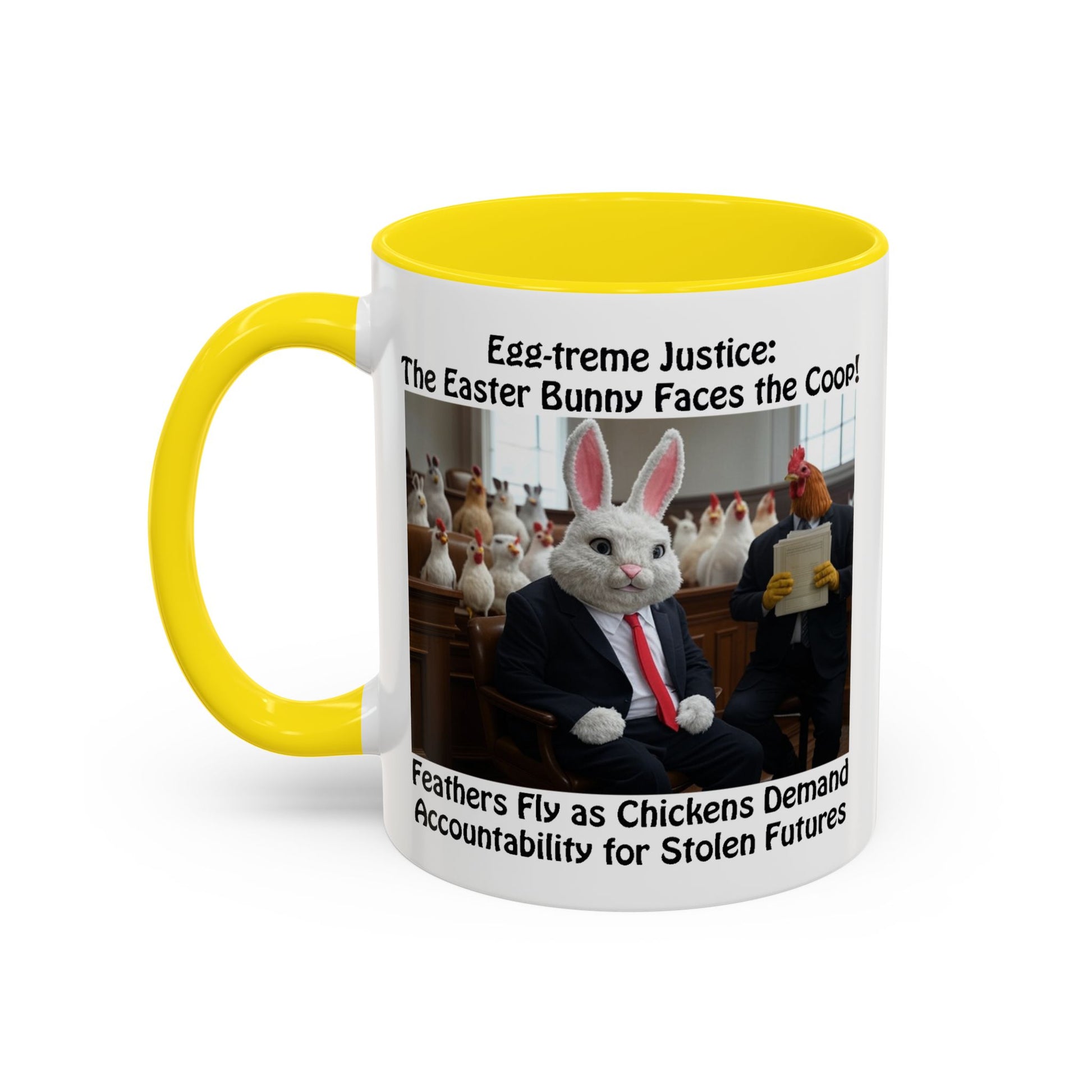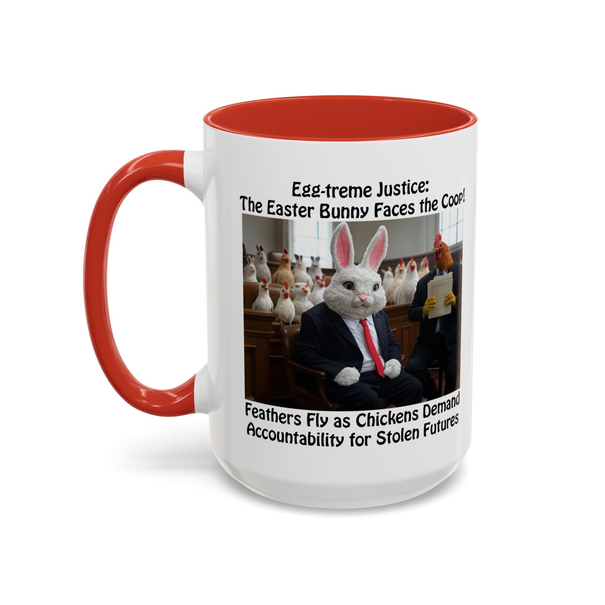 Egg-treme Justice: The Easter Bunny Faces the Coop - Funny Easter Coffee Mug - Accent (11oz & 15oz)