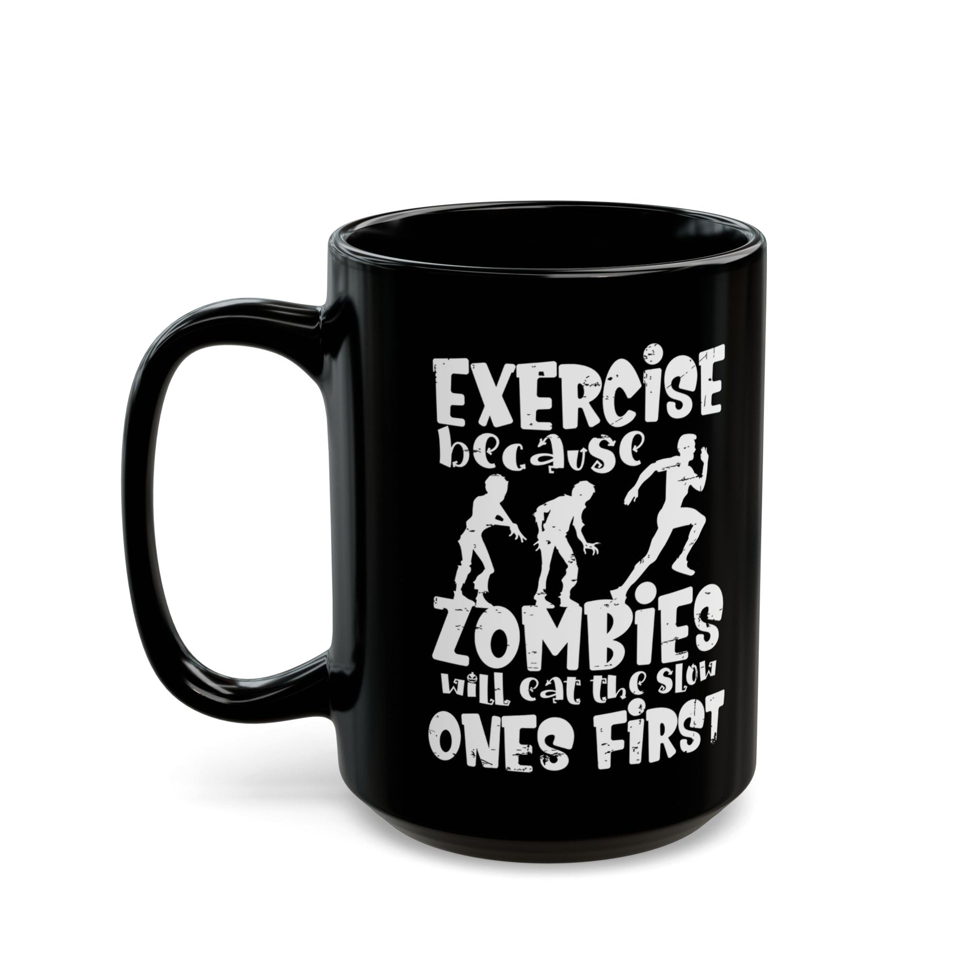 Exercise Because Zombies Will Eat The Slow Ones First - Halloween Coffee Mug - White on Black (11oz, 15oz)