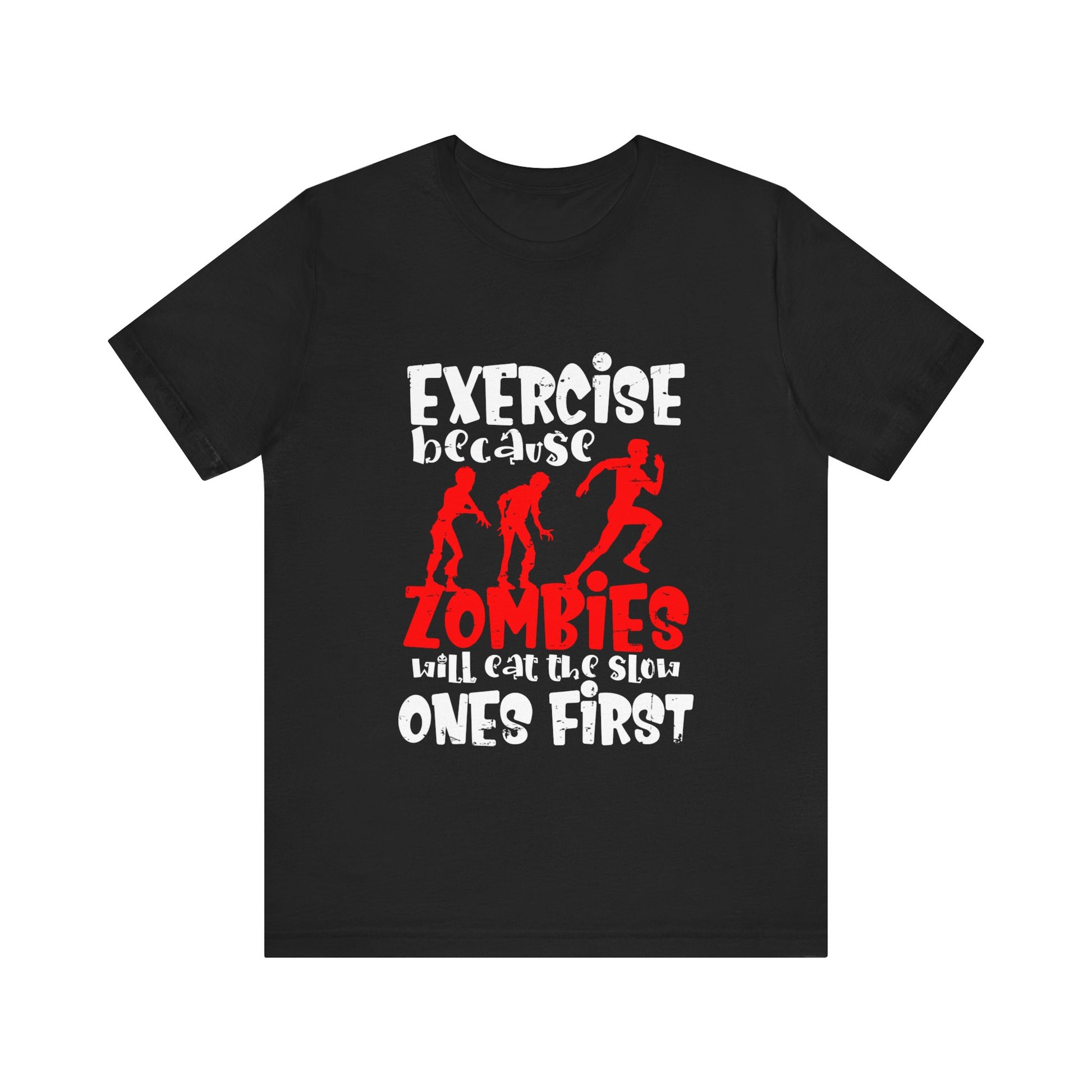 Exercise Because Zombies Will Eat The Slow Ones First - Halloween Short Sleeve T-Shirt (Bella+Canvas 3001) Express Delivery available