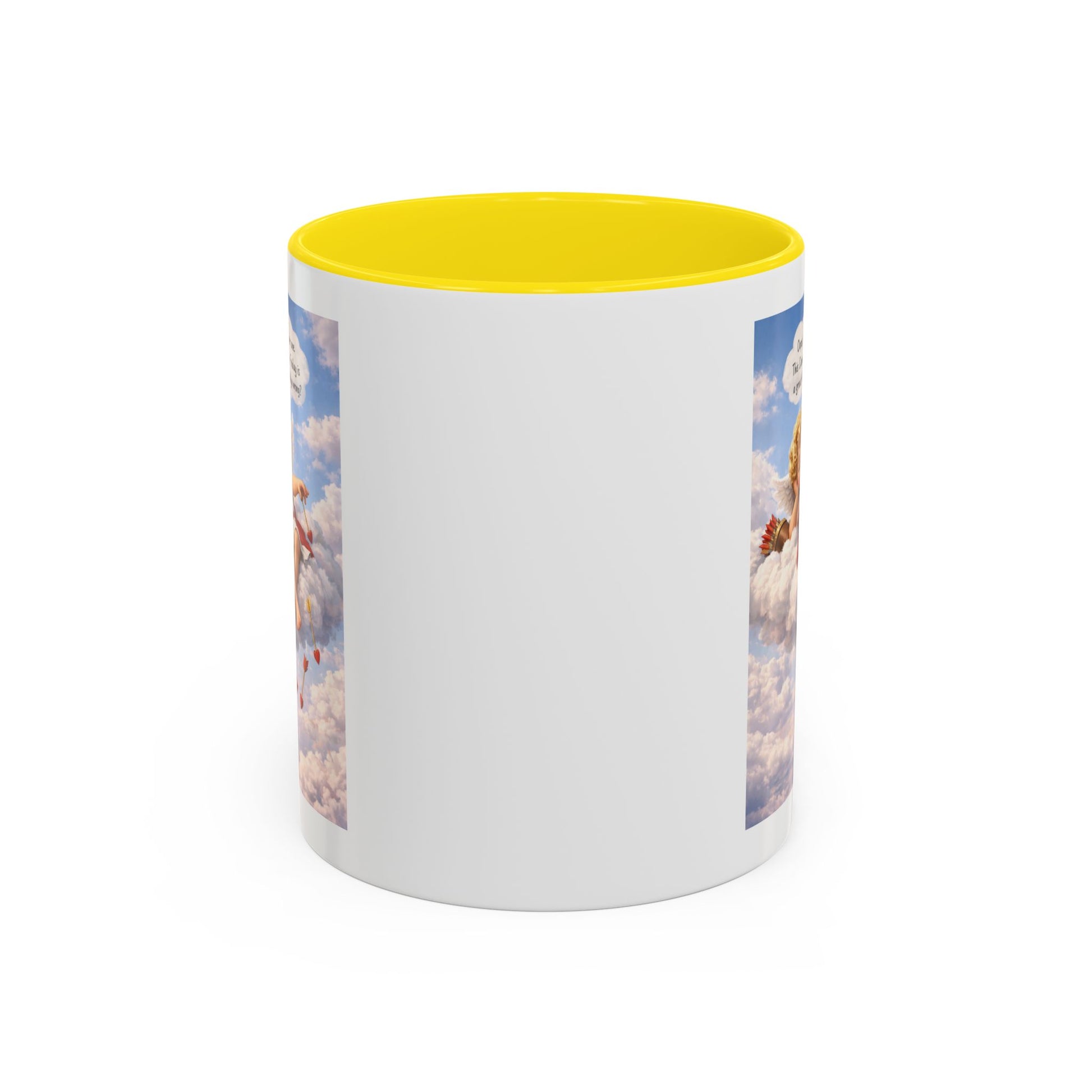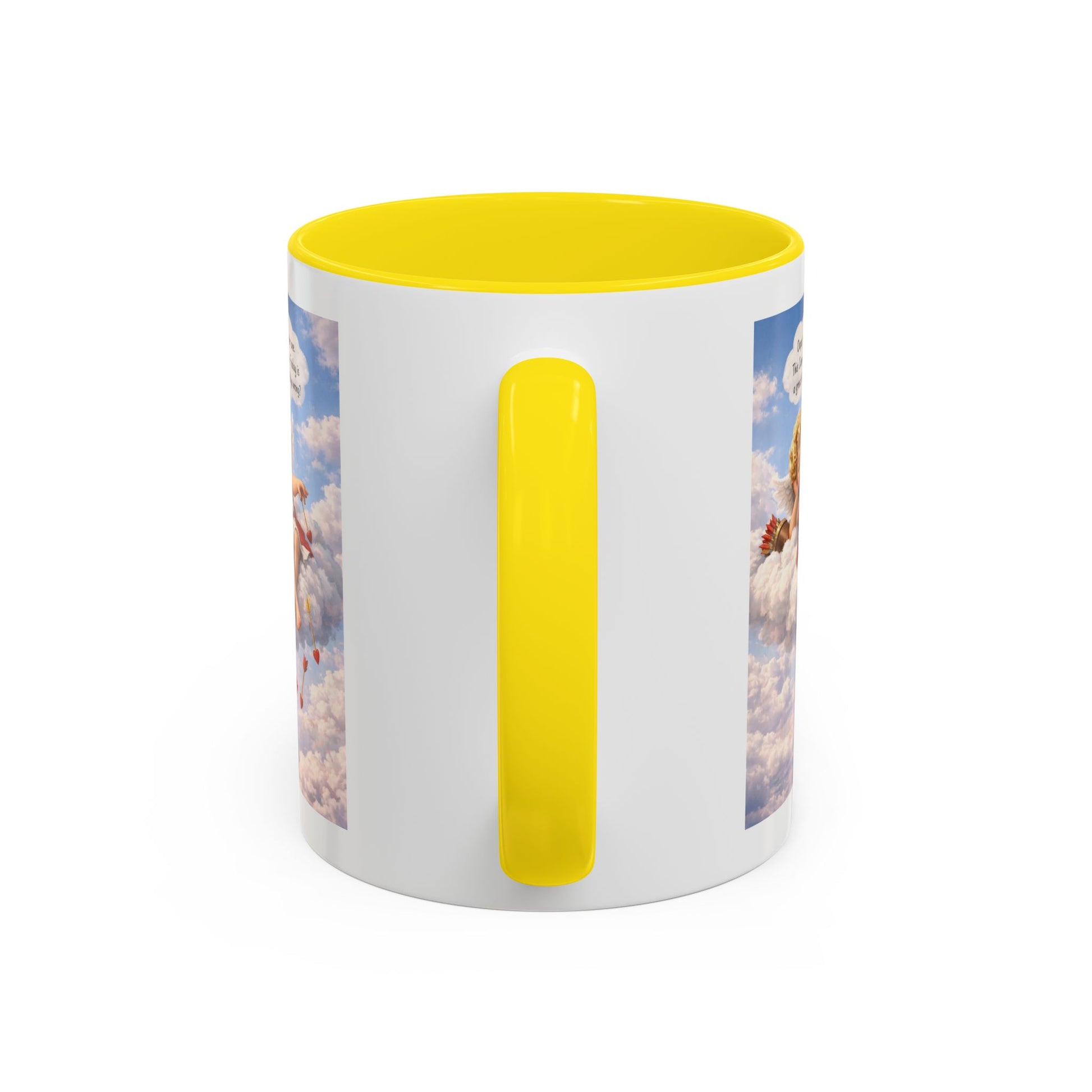 This ceramic coffee mug brings a playful, vintage-valentine vibe to quiet mornings and cozy breaks. The glossy white body contrasts with a colored interior and handle. Each sip feels like a small, whimsical escape — a nod to old-fashioned romance with a wink. The bright, crisp print stands out against the clean white background and holds up to everyday use, whether you warm up your drink in the microwave or run it through the dishwasher. Choose 11oz for a neat cup or 15oz when you need an extra pour; pick an interior color to match your mood and make this piece feel like part of your ritual.