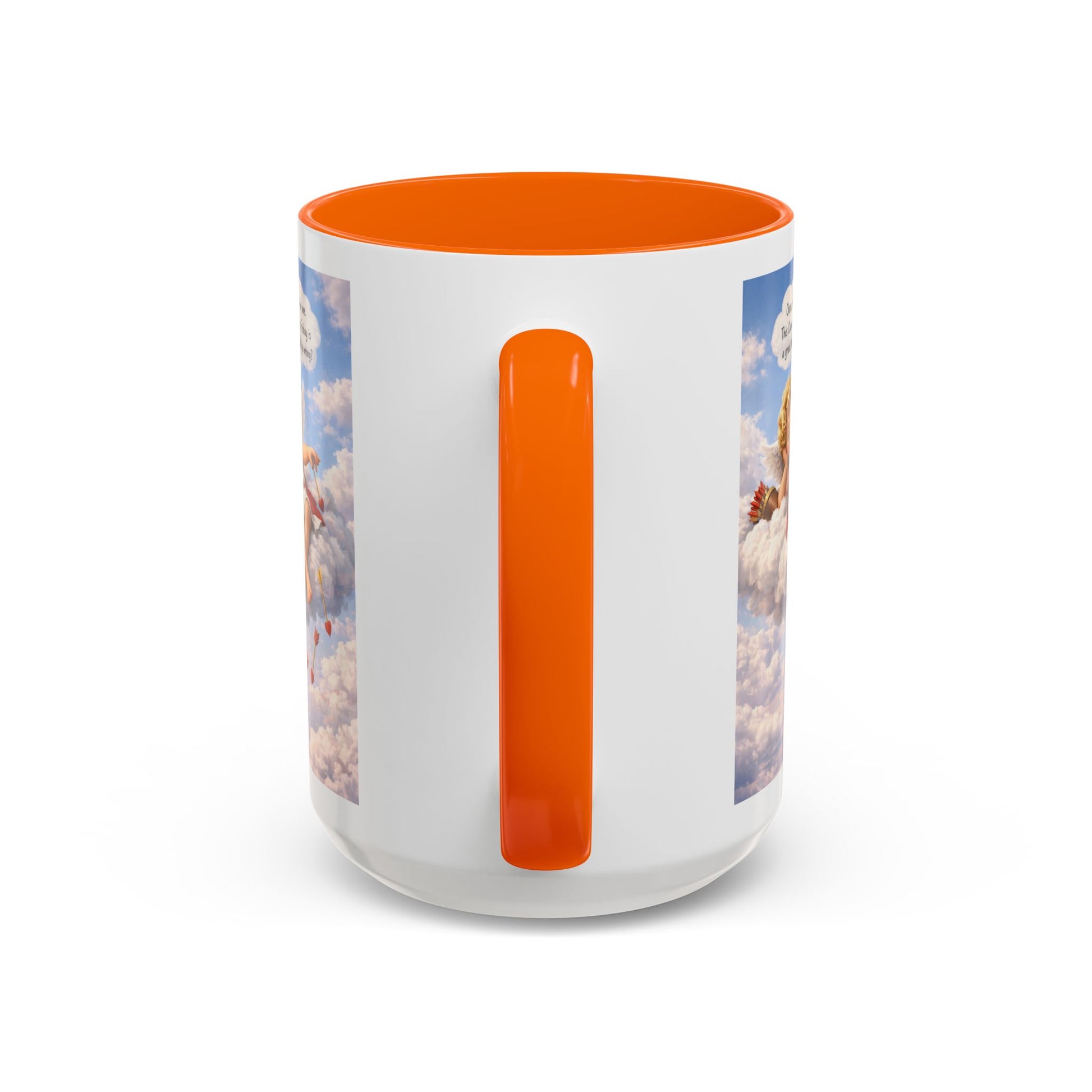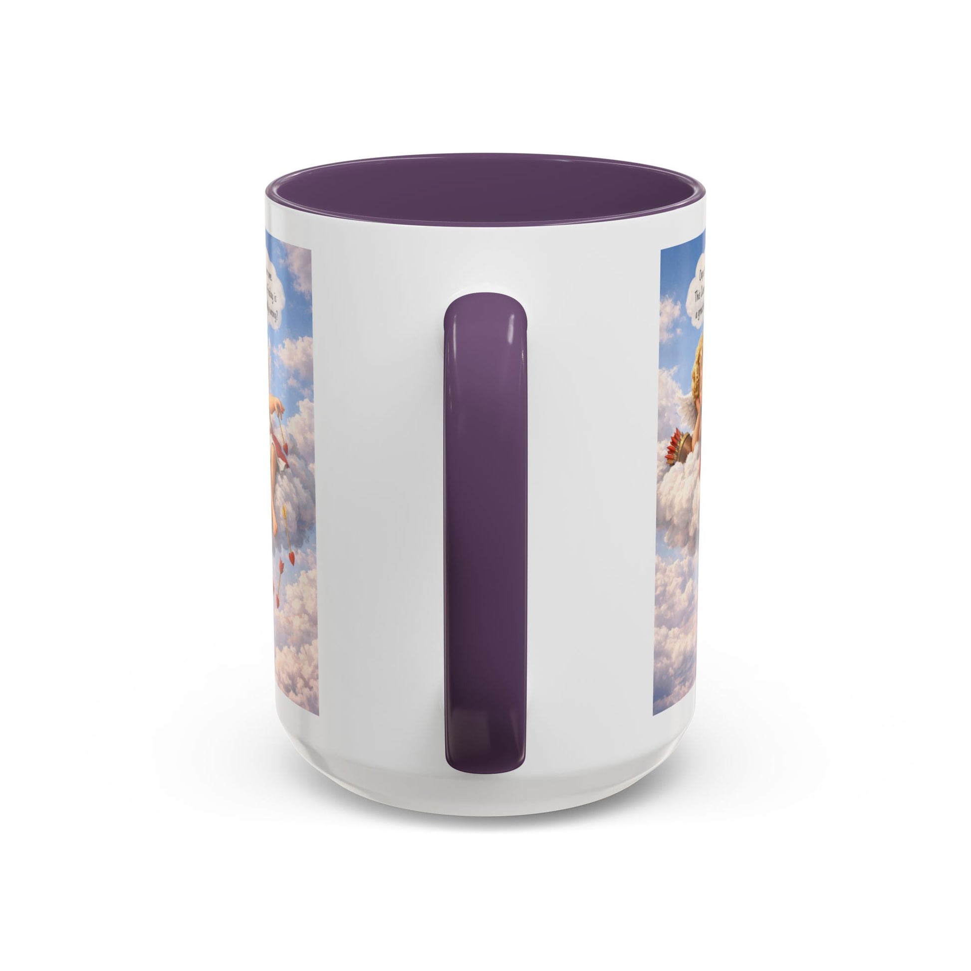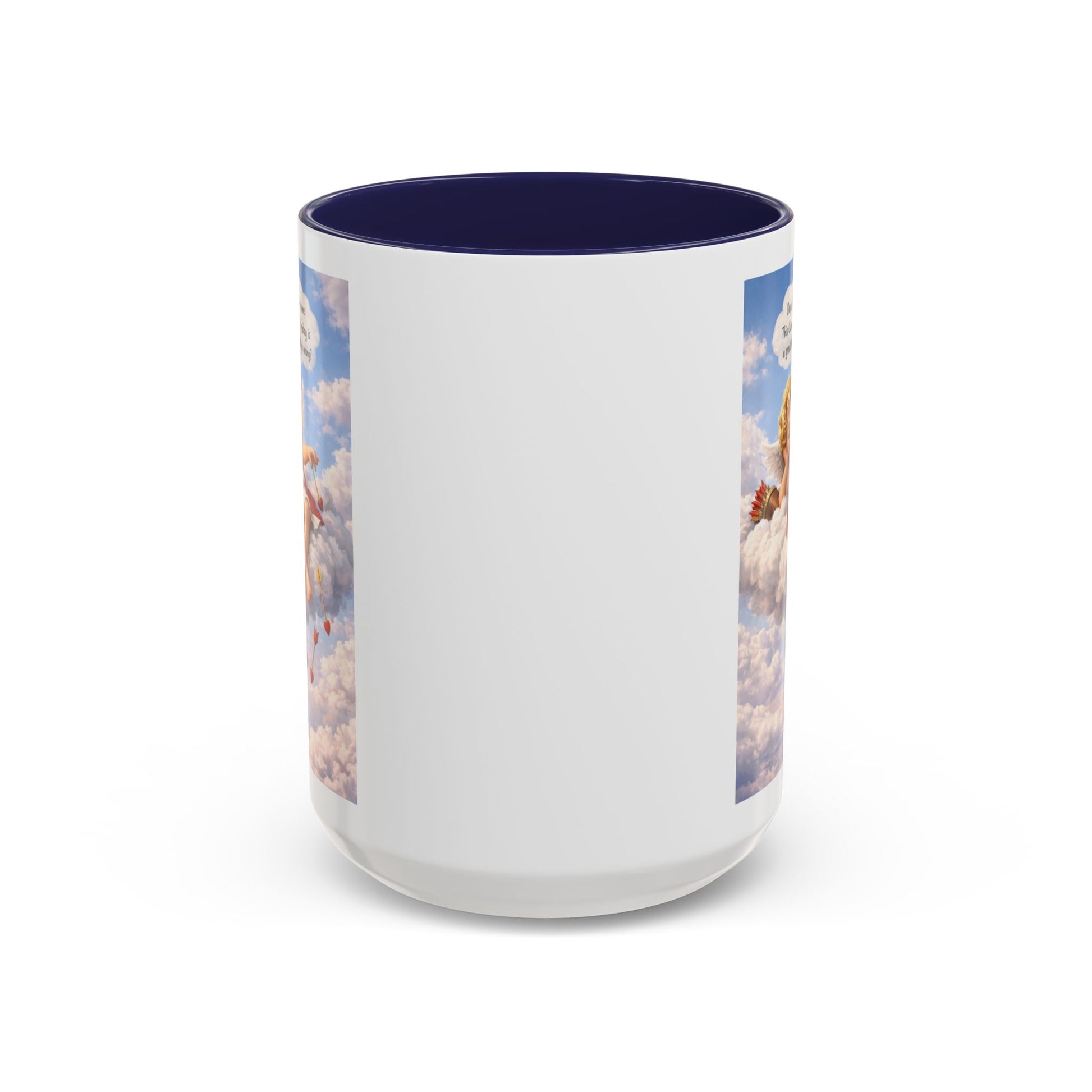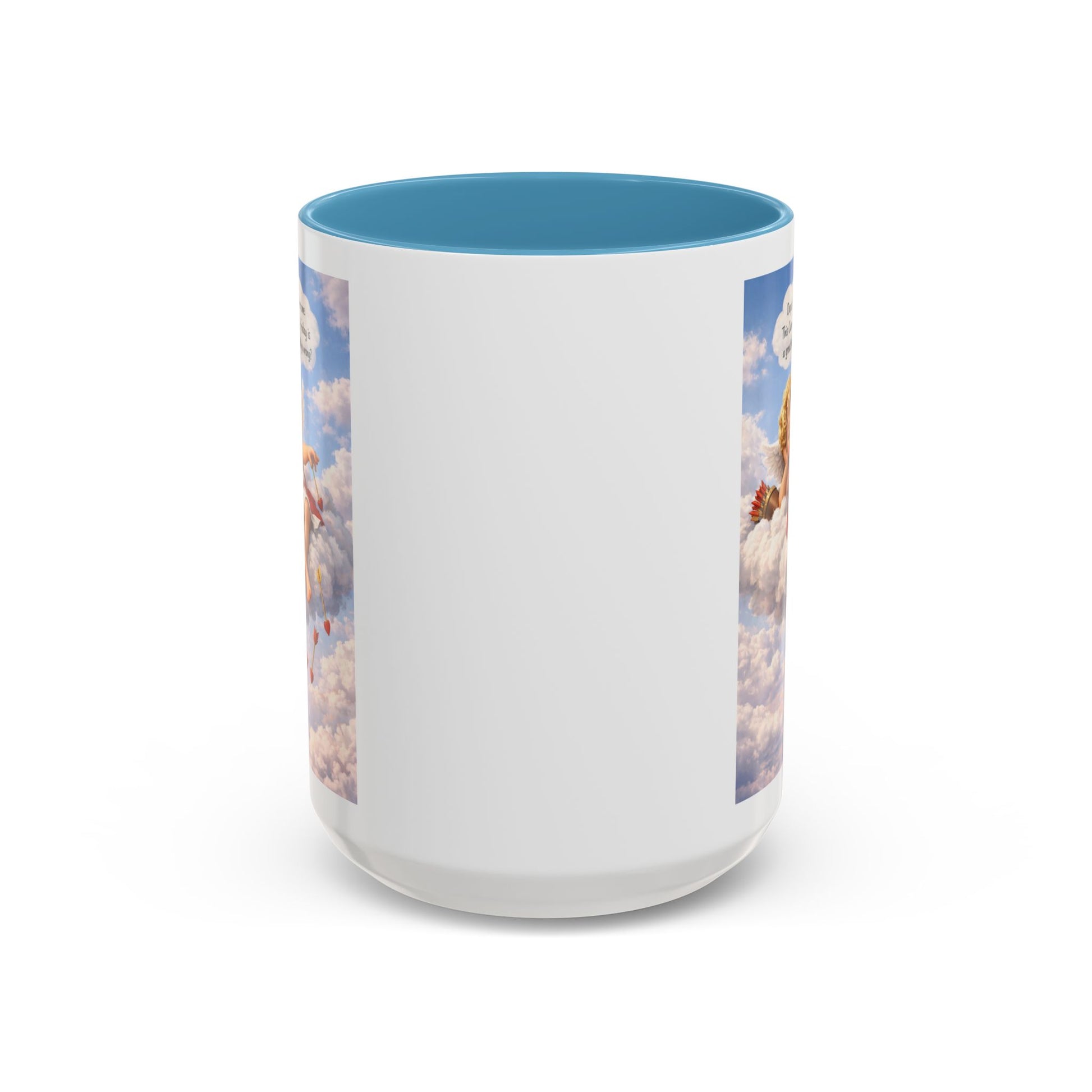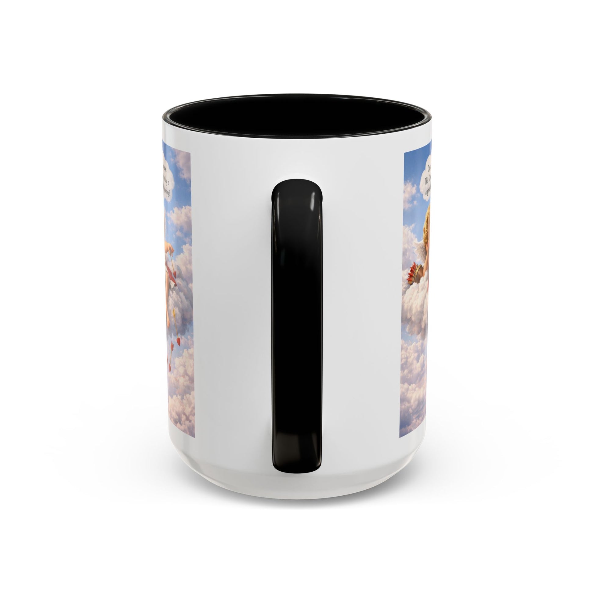 This hilarious mug features Cupid lounging on a cloud like it’s his lunch break, lazily tossing arrows like,