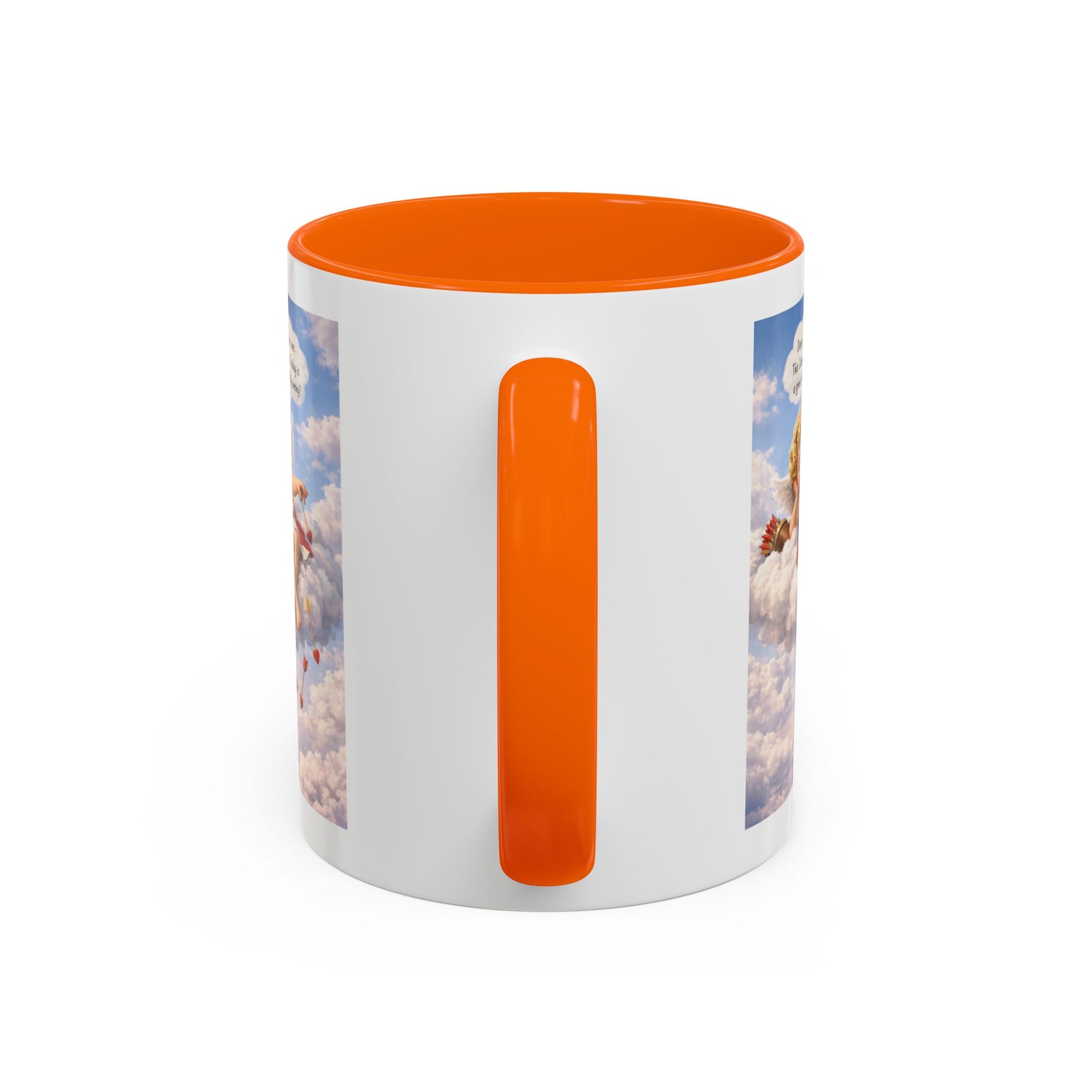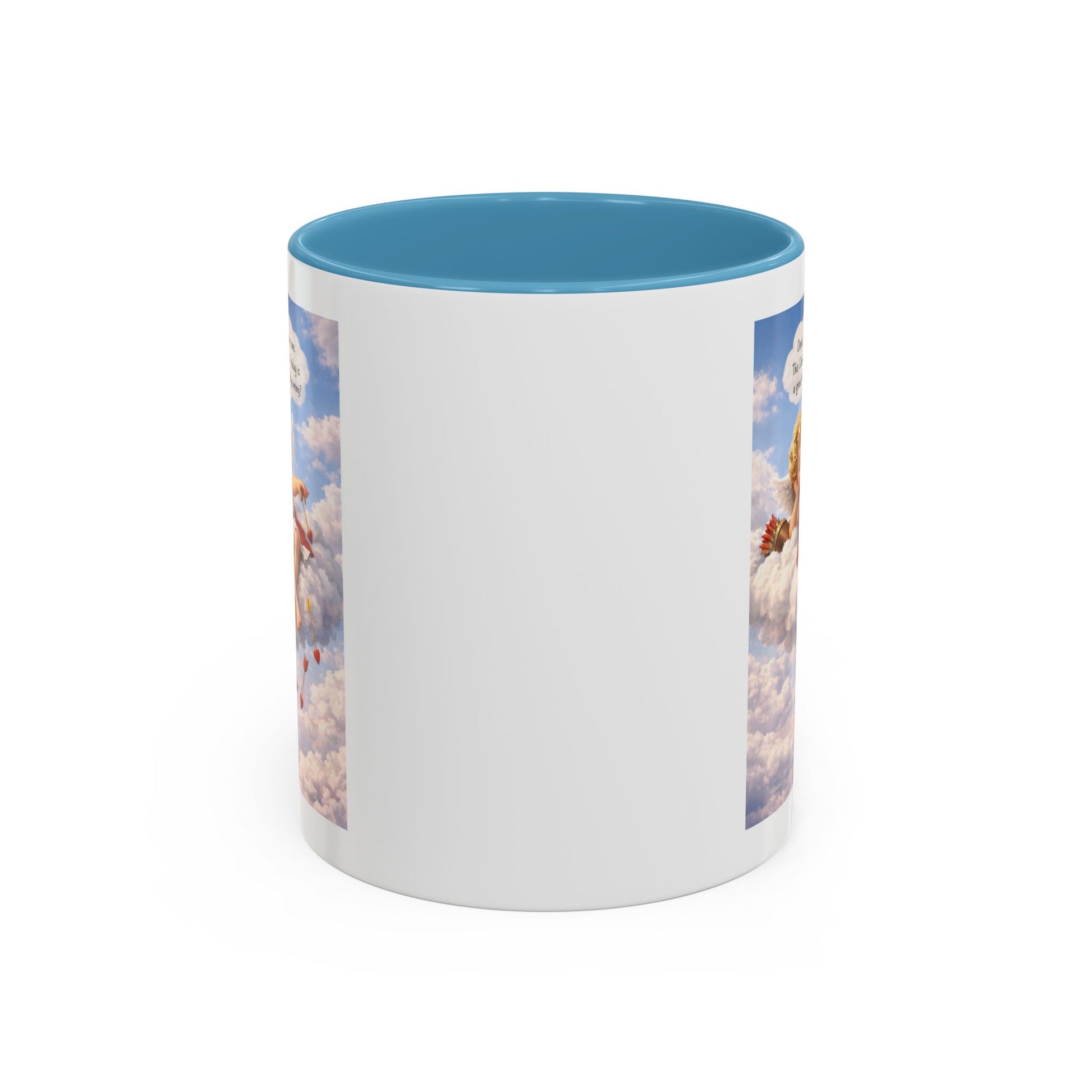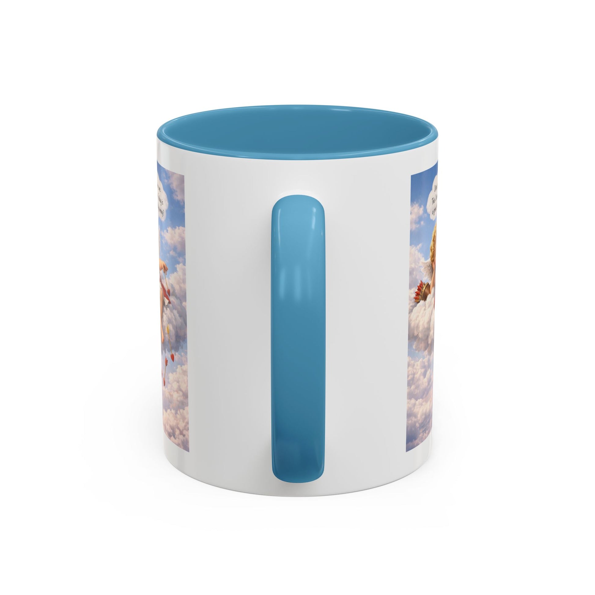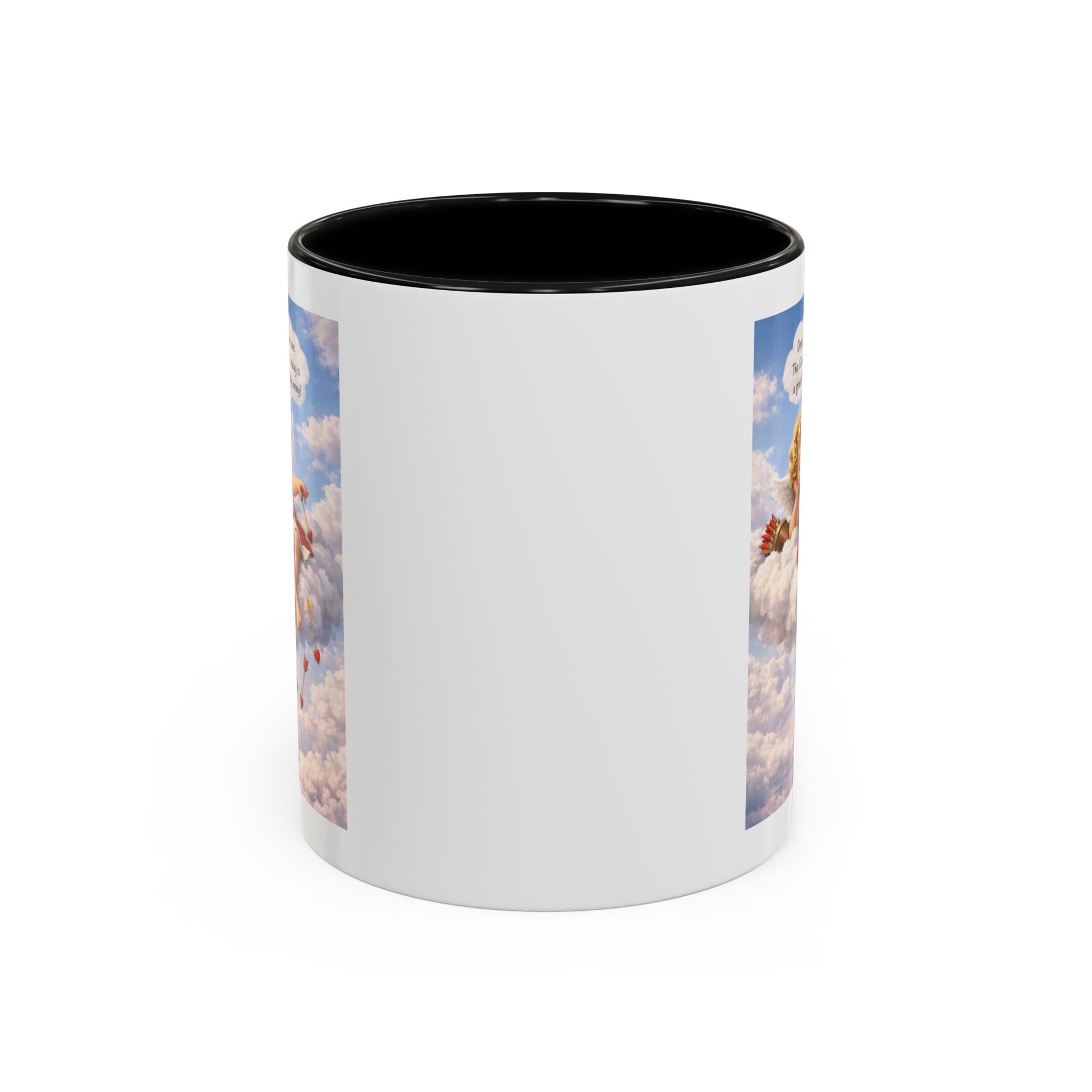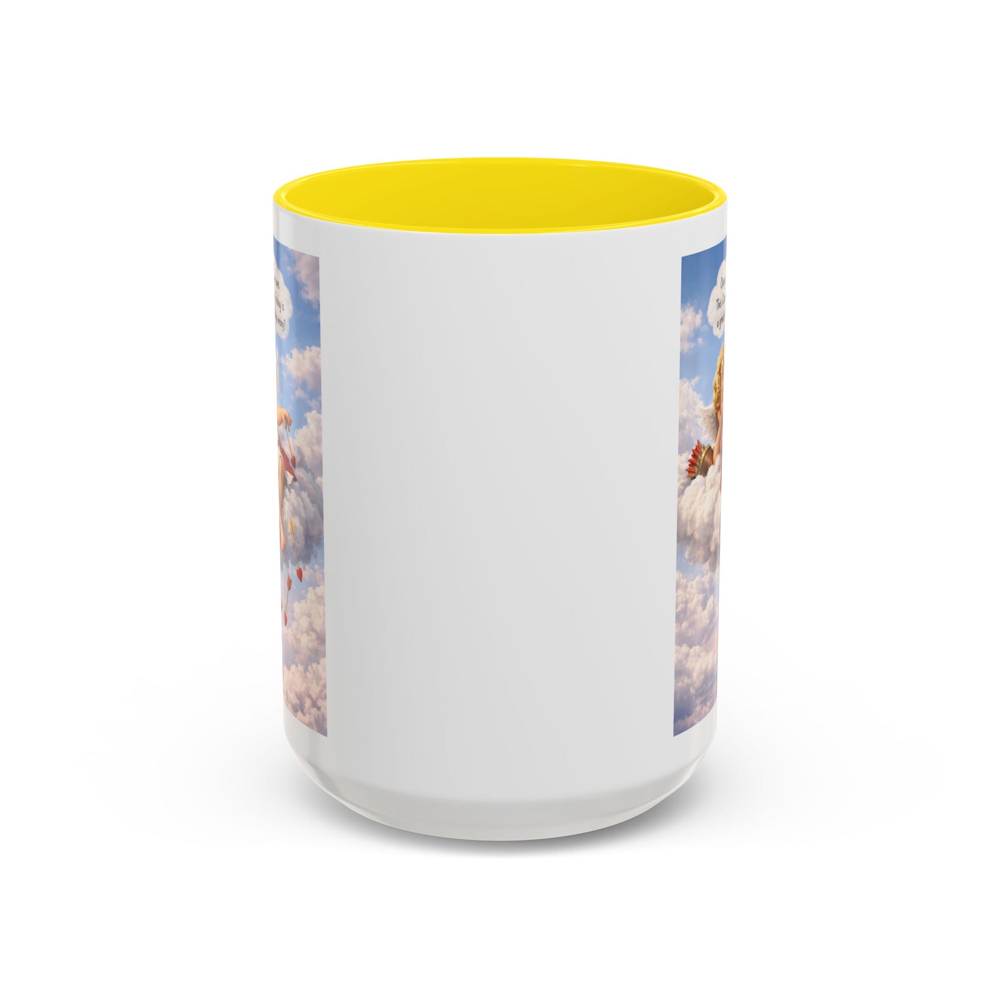This hilarious mug features Cupid lounging on a cloud like it’s his lunch break, lazily tossing arrows like,