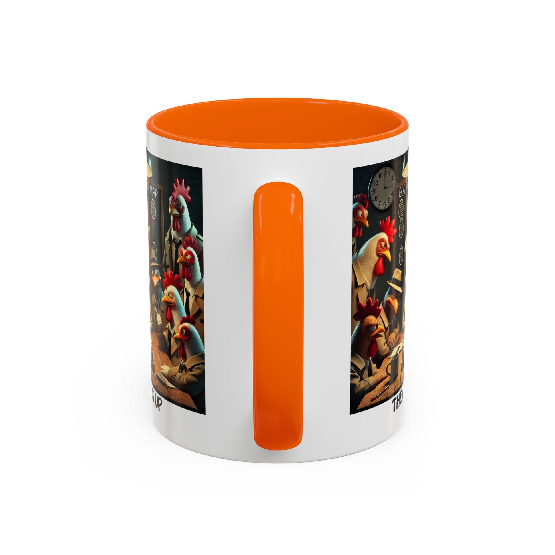 Introducing our hilariously captivating coffee mug with a funny graphic that portrays the Easter Bunny being grilled by Chicken Detectives in connection with the mysterious theft of eggs from neighboring farms. This whimsical and unique design is sure to inject a dash of humor and cheer into your morning routine or coffee breaks throughout the day.